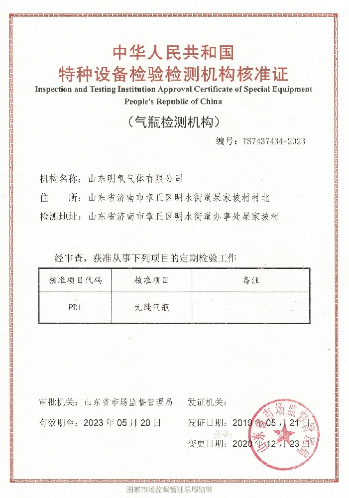 ??? 山東明氧氣體有限公司的前身為始建于1993年的章丘市明水氧氣廠,2020年12月企業由民營獨資轉型升級為山東明氧氣體有限公司,企業進入新的發展階段。公司位于山東省濟南市章丘區明水街道杲家坡村村北,占地面積4000平方米,注冊資金500萬元,固定資產投資3000萬元,主要經營項目為醫用氧氣、工業氧氣、氮氣、高純氮氣、氬氣、高純氬氣、高純氦氣、二氧化碳、混合氣體等各種工業氣體、高純氣體、混合氣體的充裝銷售、各類氣瓶的銷售、安全閥校驗、鋼質無縫氣瓶的檢驗等。